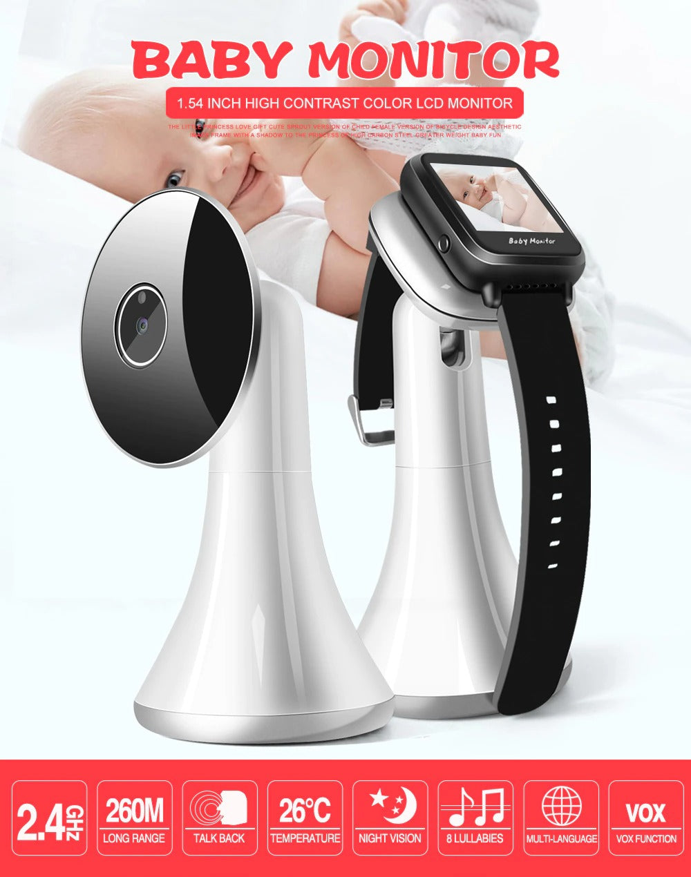 Smart Watch Baby Monitor Wireless Alarm Camera