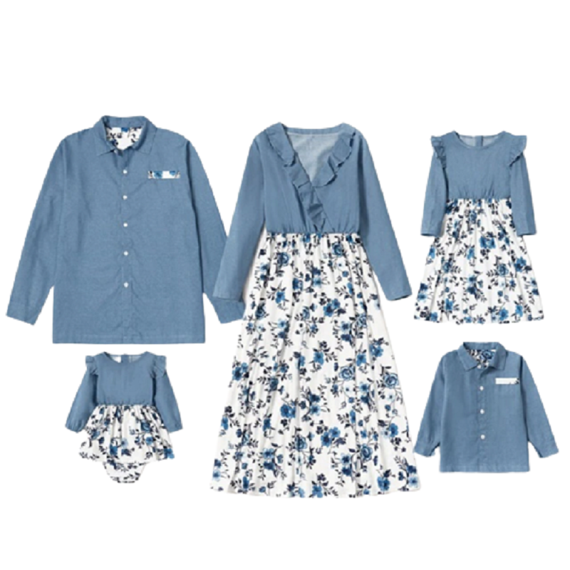 Summer & spring mosaic cotton family matching floral printed dresses sets iciCosmetic™
