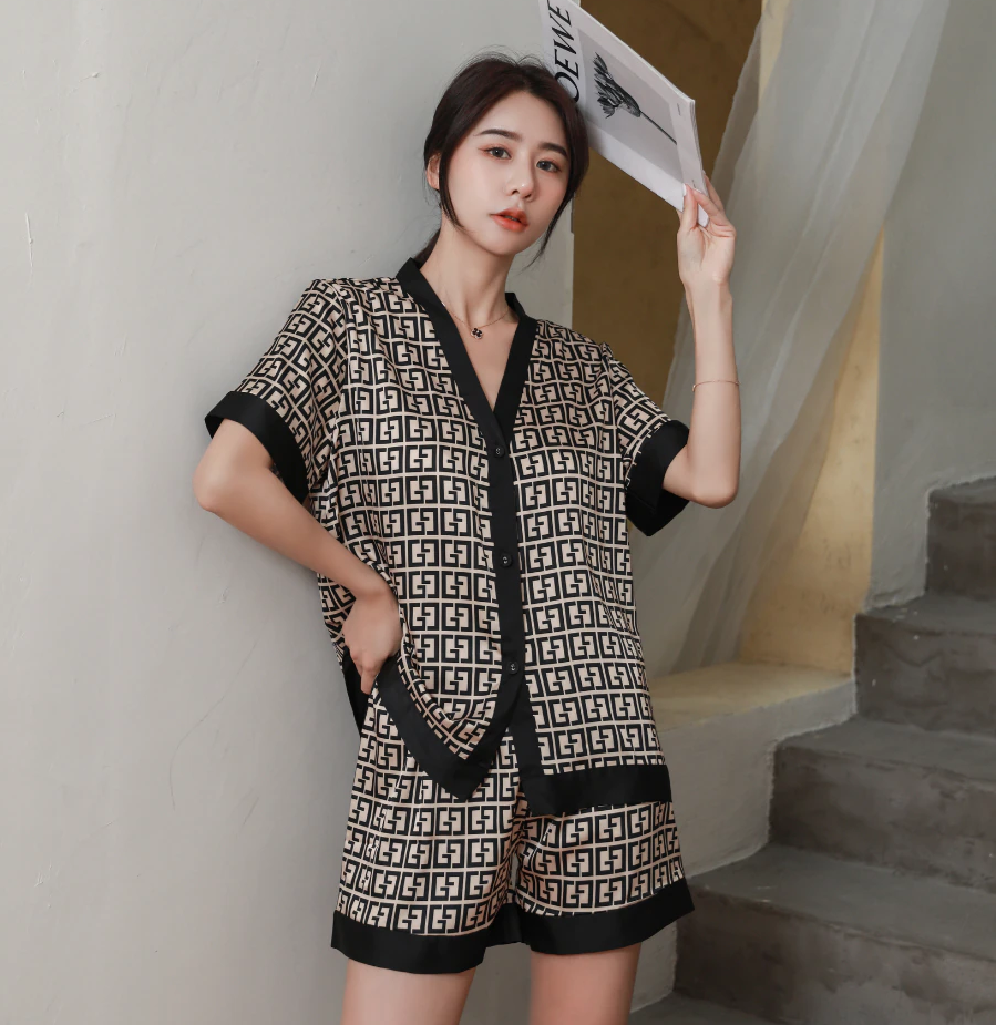Luxury women's short sleeve pajamas set