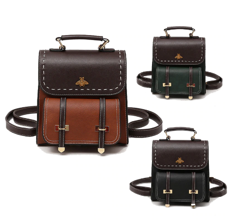 Little Bee Vintage Faux-Leather Backpack iciCosmetic
