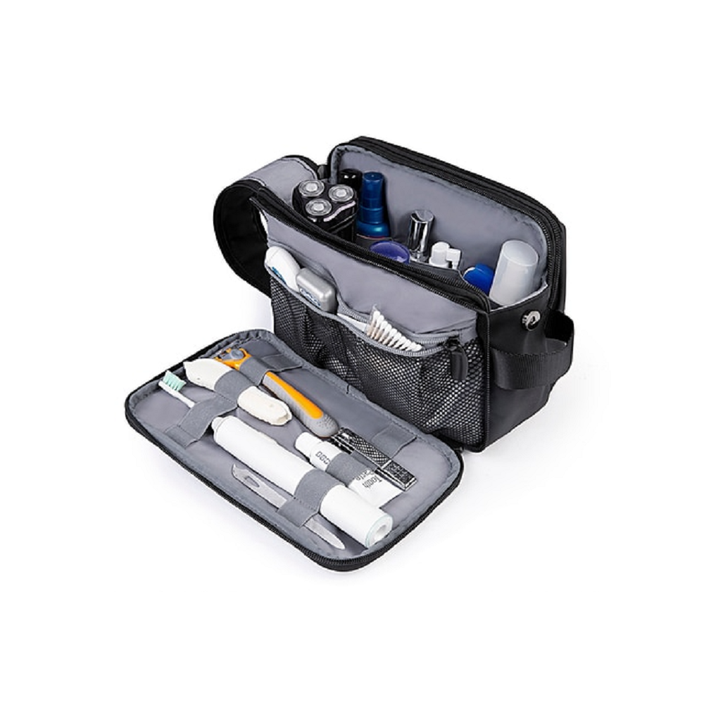 Our toiletry travel cosmetic bag for men & women can manage your full-sized toiletries, cosmetics,...