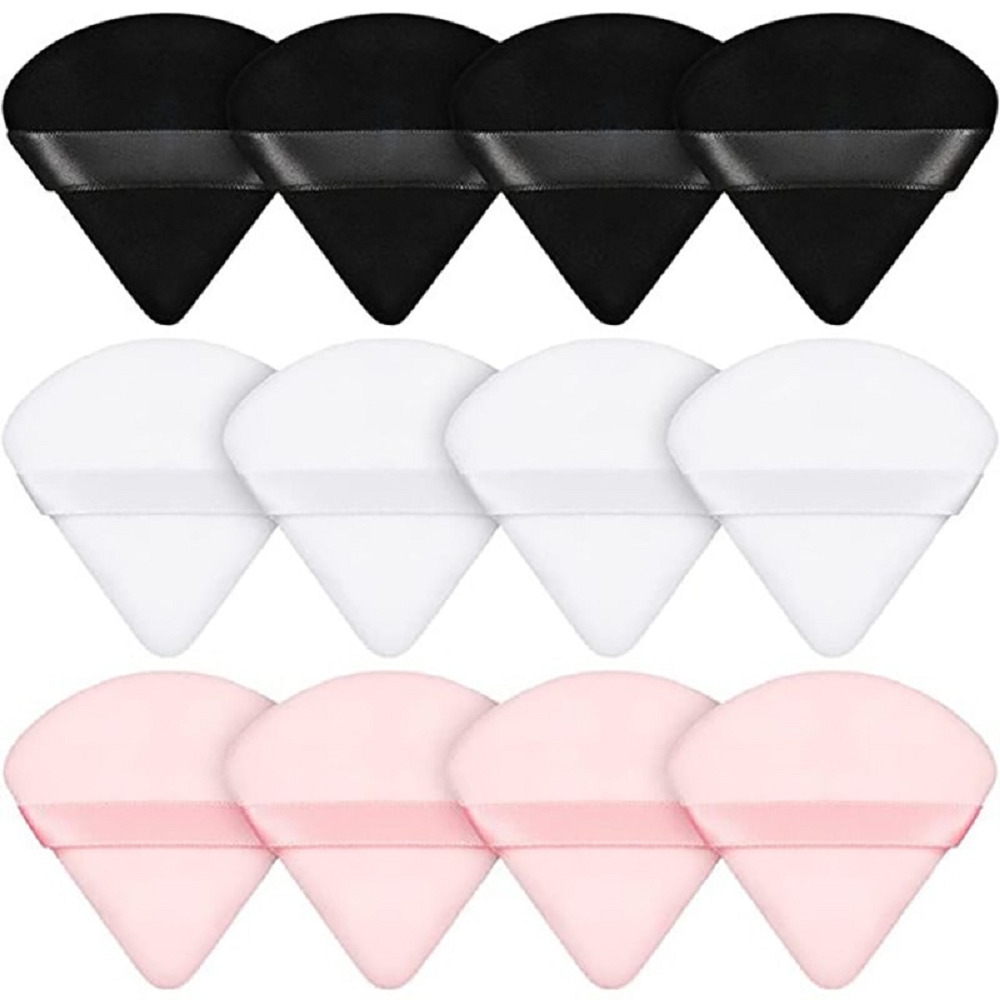 Our 12Pcs triangle velvet powder puff is made for a soft touch, while applying foundation to your cheeks and forehead, use the round side; when applying foundation to your eyes and contour, use the triangle side; and you won't have to worry about uneven makeup. It has a handy rayon ribbon on the back, so you can hold it tightly while doing your makeup and not worry about the velours falling out.