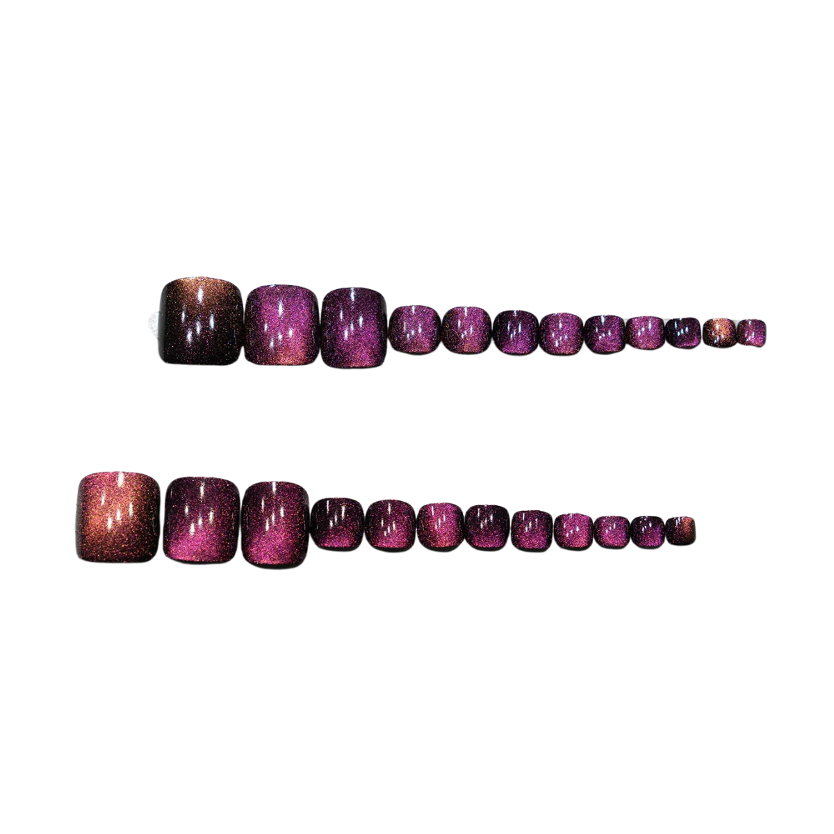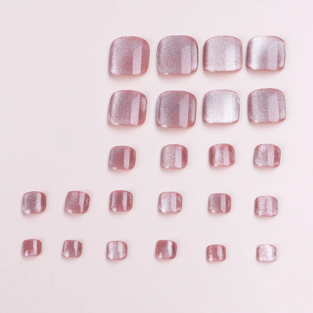 Why spend hours at the salon when you can achieve a flawless pedicure at home? With the 24Pcs Light Fake Toenails Cat's Eyes Press on Nails, you’ll get professional results without the professional price tag. Simply clean your toenails, apply the glue or adhesive backing to the press-on nail, and press firmly for about 20 seconds. You can then trim and file them to your desired length and shape. It’s that simple! Enjoy stunning, salon-quality nails in a fraction of the time.