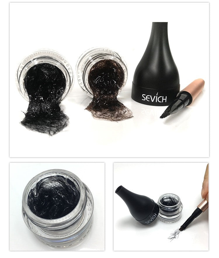 This creates a WATERPROOF glue-on eyebrow with hair-like fibers that fills, defines, and lengthens brows. You can easily and freely control the shape and thickness of eyebrows using a high-end soft brush.