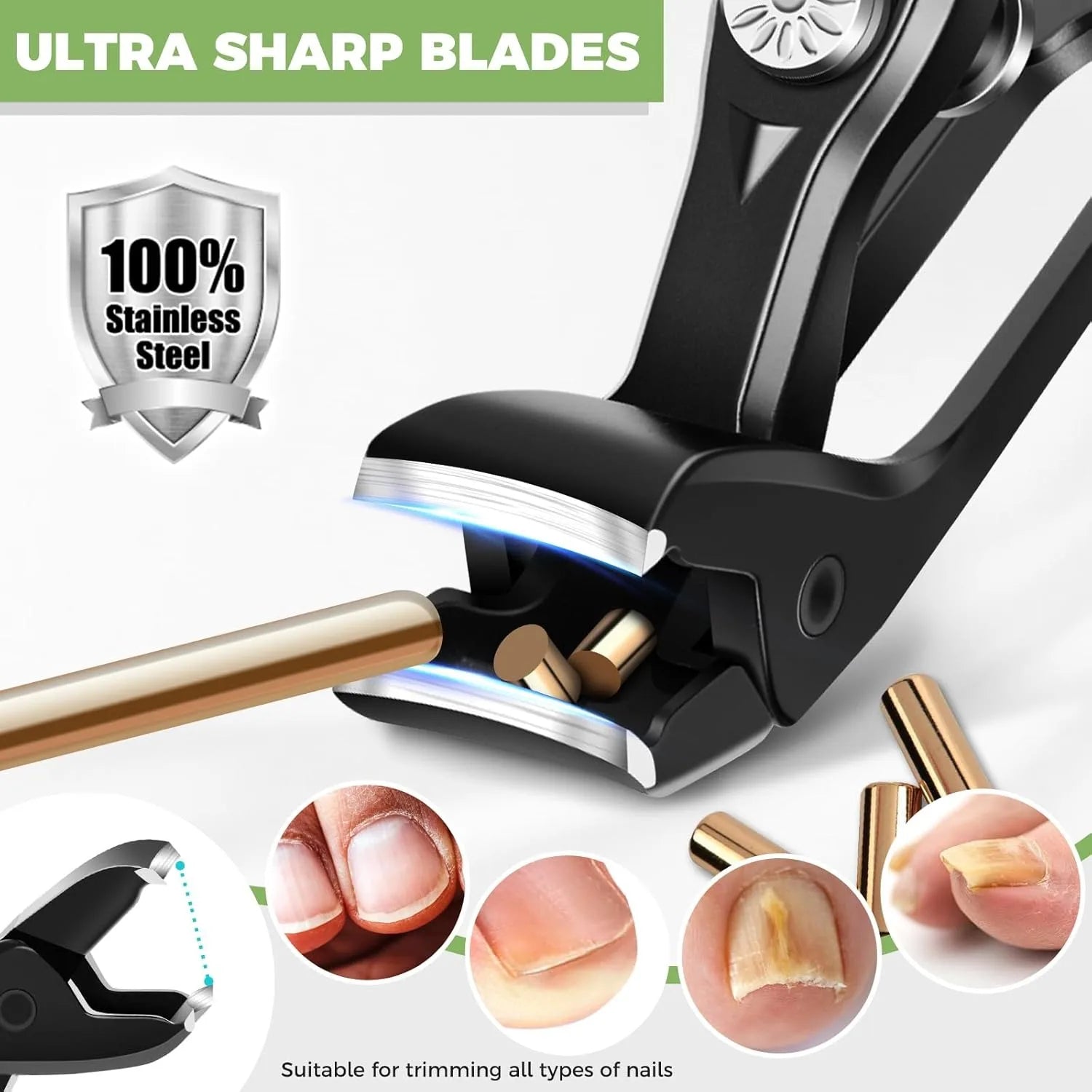 Unlike regular clippers, our podiatrist-grade toenail clippers feature a 25-degree curved blade, conforming to the nail’s natural shape for deep, precise cuts. The upgraded 45° slanted design allows you to trim ingrown nails and rough edges effortlessly, preventing painful nail conditions. The non-slip ABS handle provides a comfortable grip, reducing strain on the hands—perfect for seniors, pregnant women, and individuals with limited mobility.