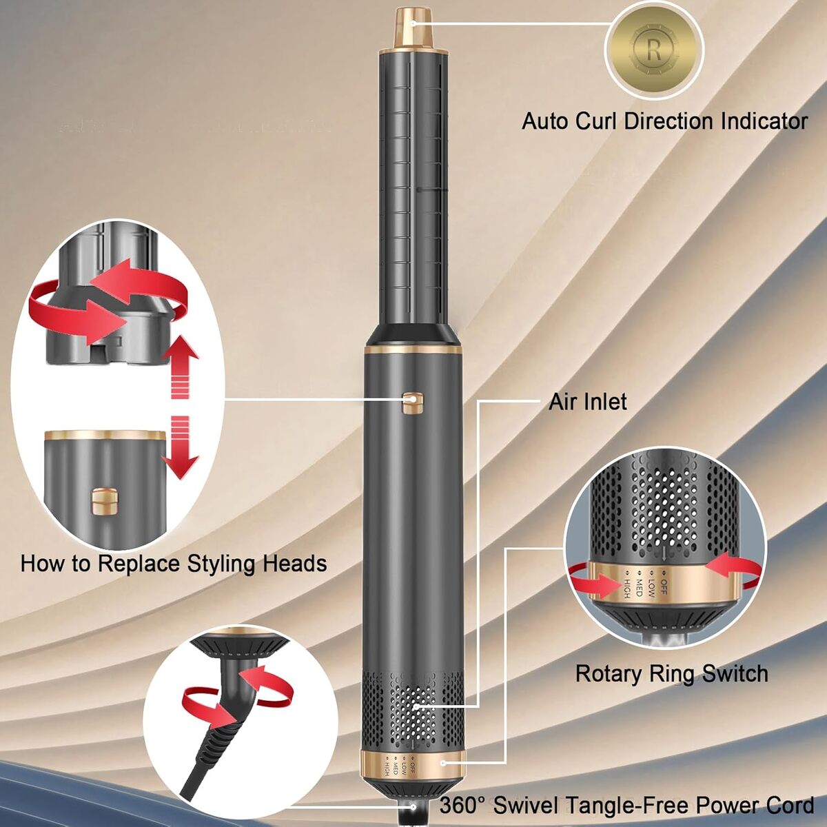 Equipped with a powerful 800W motor and 120,000 RPM airflow, this hair styler dries hair up to 50% faster than basic models. With 5 interchangeable attachments—including a hot air brush, curling wand, straightener, volumizing brush, and drying nozzle—you can achieve sleek straight looks, bouncy curls, or voluminous blowouts effortlessly. The adjustable heat and speed settings ensure a personalized styling experience for every hair type.