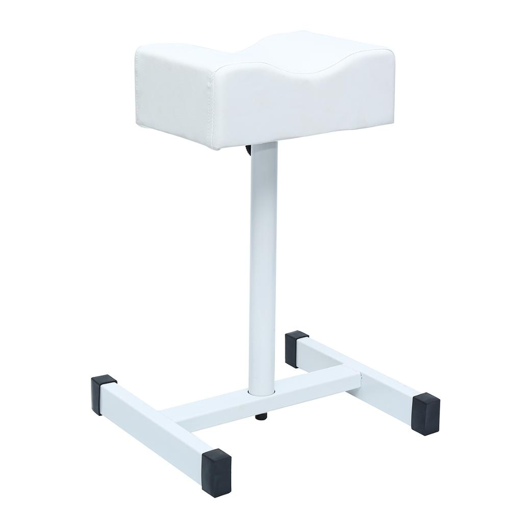 The footrest stool's height may be freely changed from 18" to 27" (4668cm), easily meeting diverse demands for rest and support of arms or feet. Turn the knob on the stand to adjust the height. This pedicure footrest stool has a soft PU leather outer covering, a thickening inner cotton cushion, and a solid steel frame and stands, making it pleasant, long-lasting, and dependable.