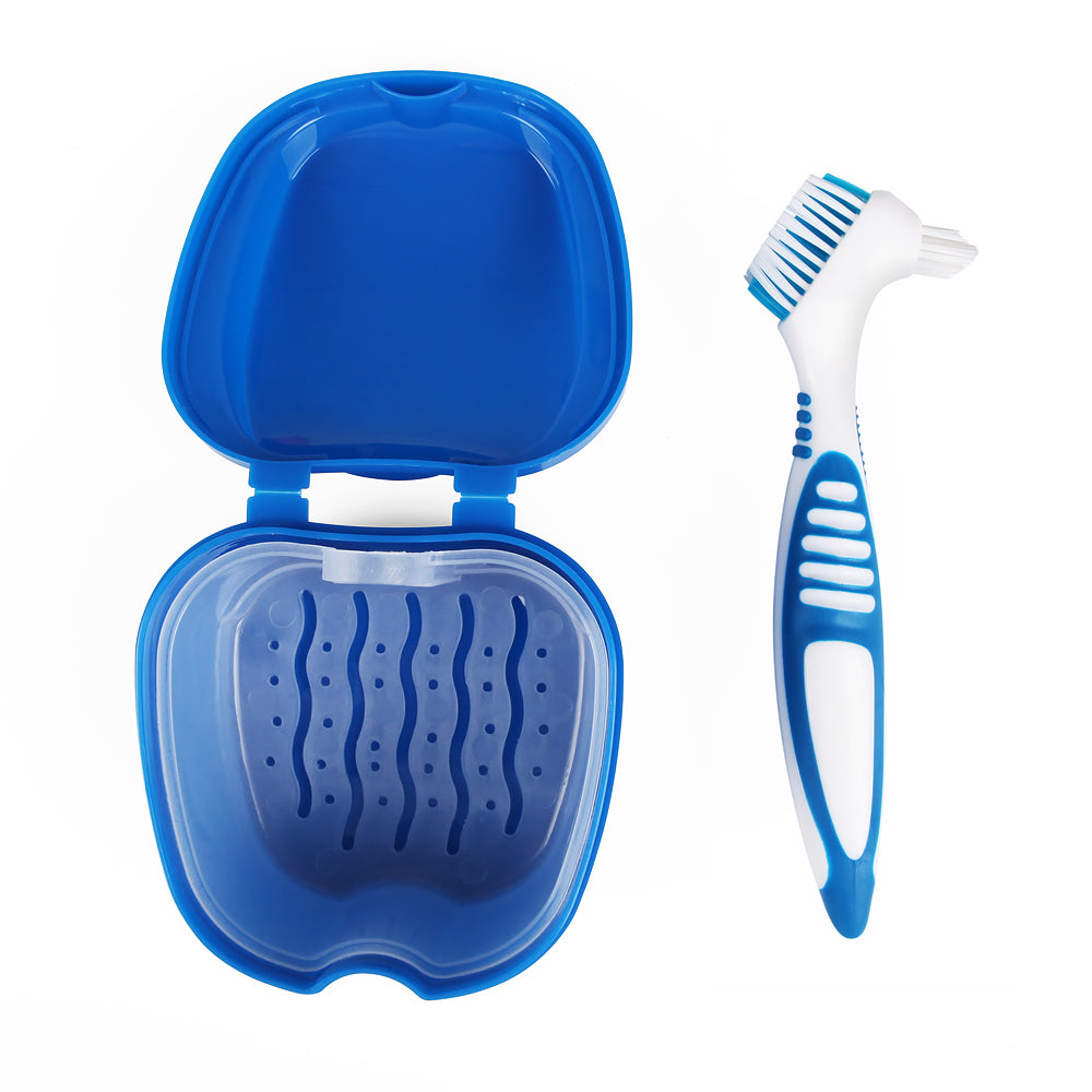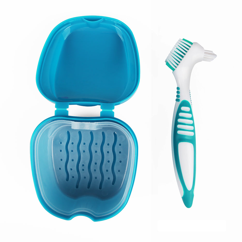 Denture Bath Box Retainer Container with Denture Tooth Brushes