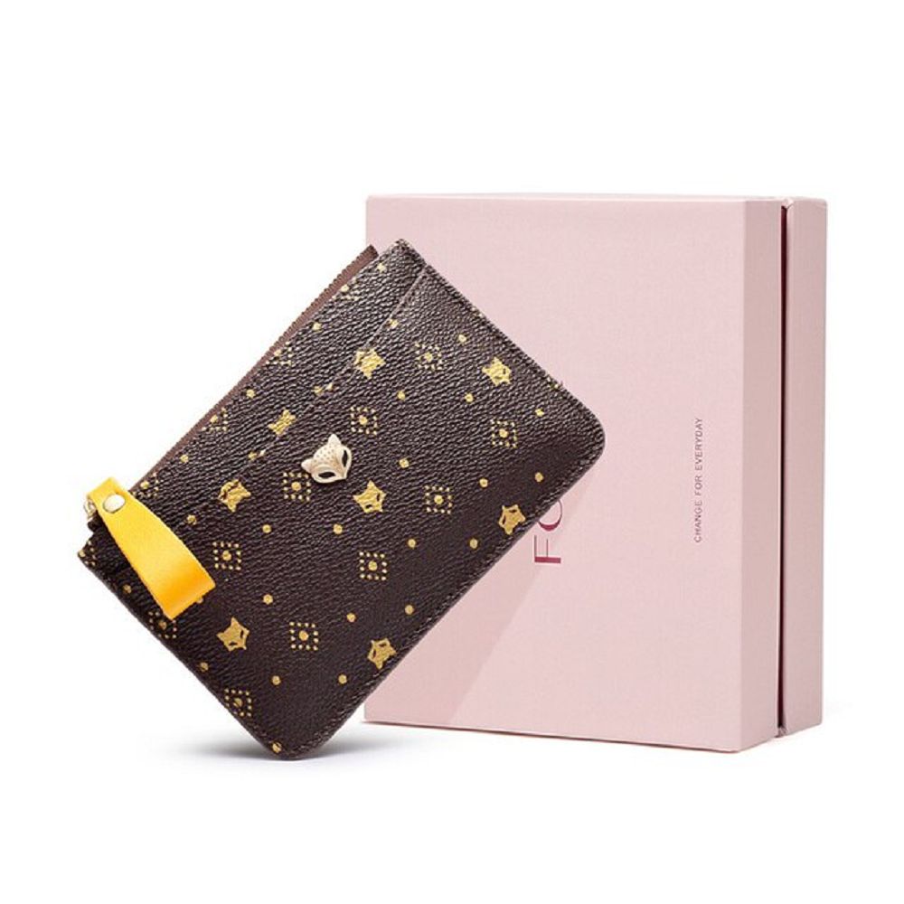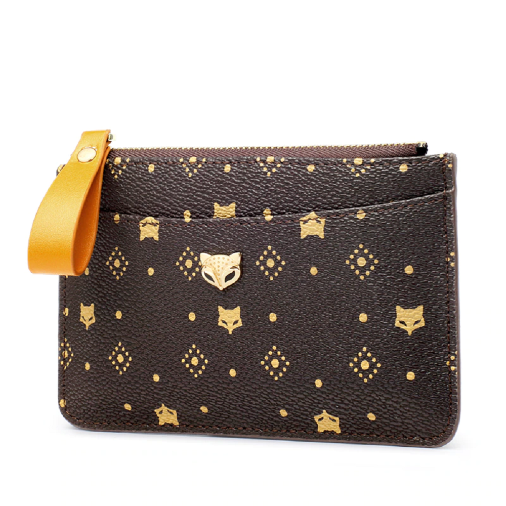 Our small wallet is sleek and trendy thanks to its durable PVC leather material and logo characteristic pattern. It is ideal for a brief outing because it is thin and lightweight. A zipper closure helps prevent personal items from spilling out of your wallet. It includes one zipper coin pocket for storing your coins.