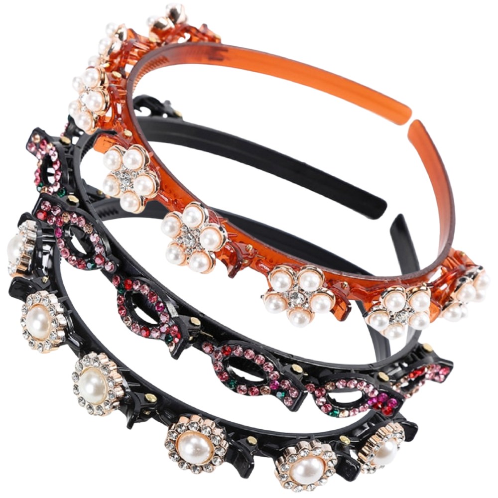 There are three various designs of rhinestone hairstyle hairpin headbands; pearl-like decorations make them seem beautiful and gorgeous; the colours of unique-shaped embellishments are extremely rich; and varied styles enable one to use them on different occasions, which adds to their attractiveness. There are also 8 clips on the headband that may be shaped.