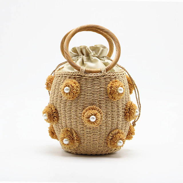 It's ideal for use as a little tote handbag, a mini clutch handbag, or a girls portable. Handbag for summer beach, walking, resorts, travel, dating, pool party, picnic, beach, vacation, everyday life, party, etc., or casual daily. Handmade rhinestone crystal decorated little straw bucket purses, amazing craftsmanship, a lovely accessory for yourself, mum, daughters, lover, and other female friends on a special occasion.