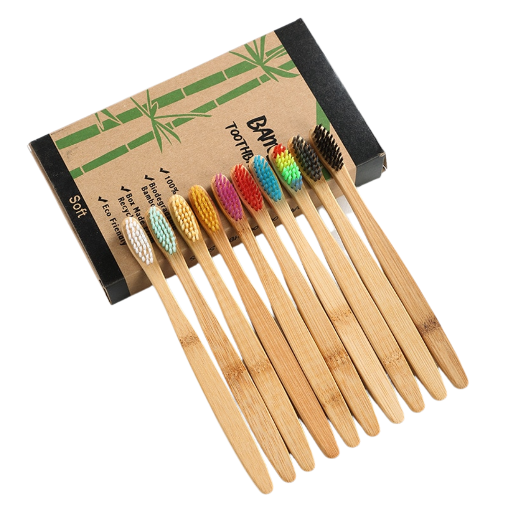 Our natural bamboo toothbrush set soft bristle charcoal teeth set of 10 and mint-essence dental floss in its own bamboo toothbrush case for convenient, clean, and neat storage and travel. This natural dental kit is mild enough for everyone in the family to use to improve and maintain oral hygiene. Colour bamboo toothbrush charcoal soft bristles without bisphenol A ensure that your teeth's enamel and delicate gums are not damaged.