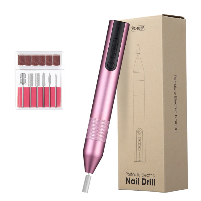 Portable electric manicure cordless nail drill can be charged by a USB outlet, such as a power bank, PC, AC adapter, vehicle charger, and so on, and has a built-in 650mAh Lithium battery that supports 2-3 hours of operation after 1.5 hours of charging. To change the drill bit, just pull it out and insert it. The compact pen-shaped form simplifies the operation.