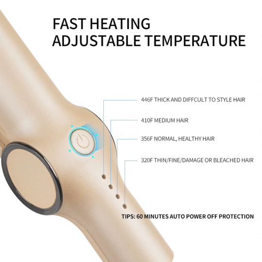 Our Twisted 2 in 1 Hair Curler And Straightener includes multiple heat settings for any hair type plus an Automatic Shutoff! It features professional titanium plates that heat up in 30 seconds.