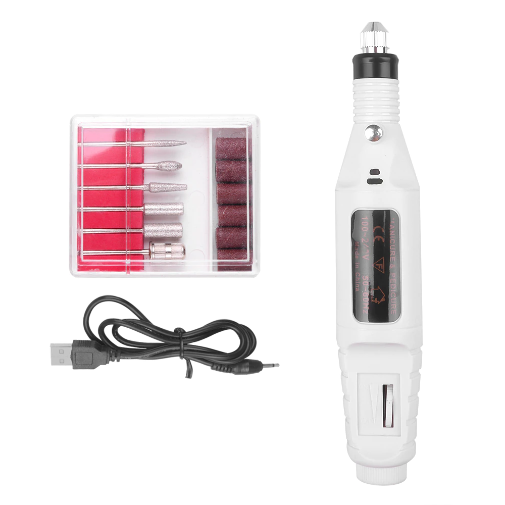 Nail set with multiple drill tips, equipped with 6 different nail tips and 6 sanding belts, suitable for use in any scenario, to keep your nails beautiful at all times. Works for natural as well as artificial nails. Designed for grinding, cutting, carving, polishing for nail art, dead skin, thick fungal nails, ect.