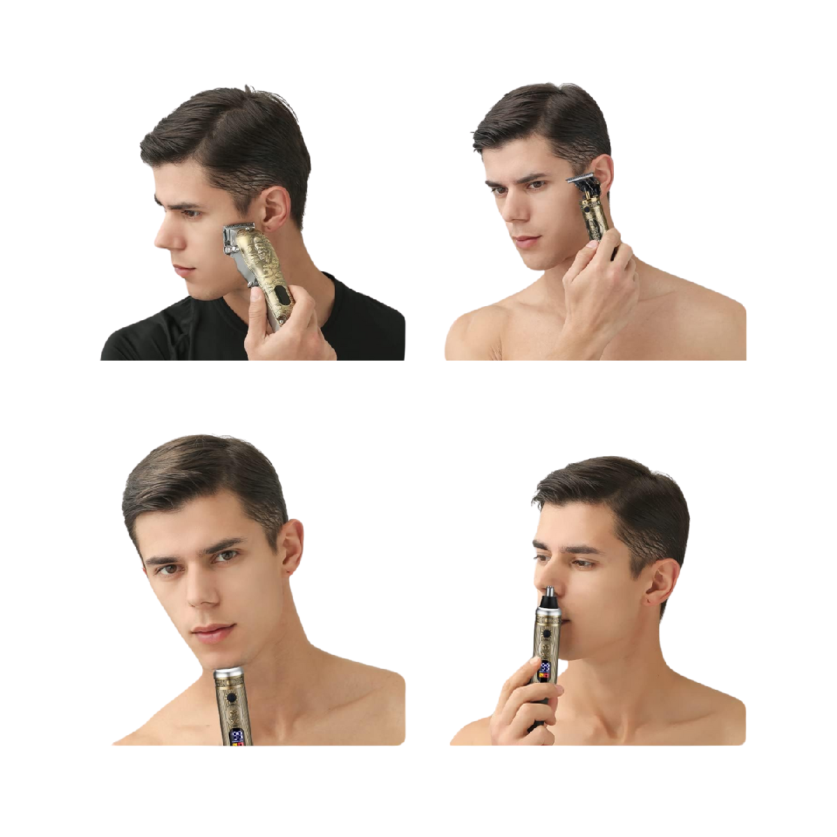 The Professional Hair Barber Clippers Set is a game-changer in the world of grooming. This sleek and multifunctional kit redefines precision with its high-performance hair clipper, T-blade trimmer, and beard/nose hair trimmer. Designed for both barbershop professionals and home hairdressers, this set ensures an unparalleled hair-cutting experience.