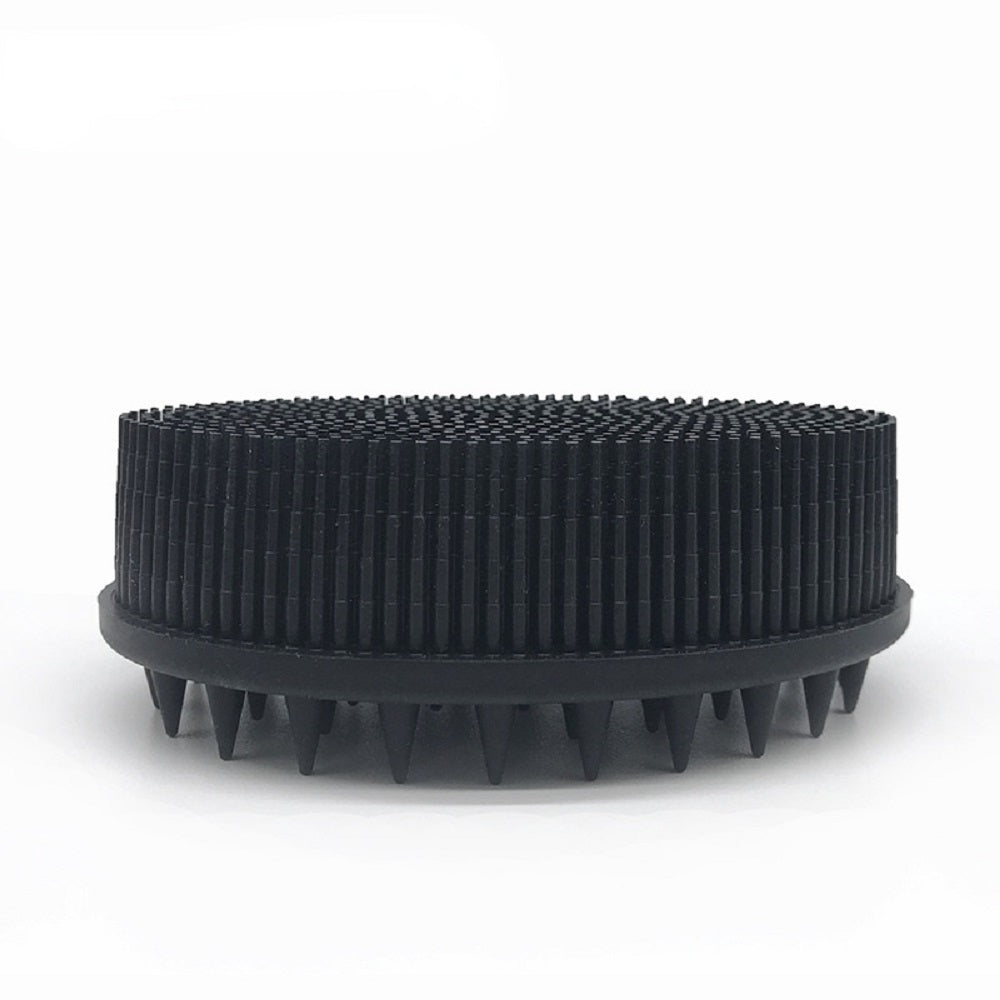 What sets our product apart is its 2-in-1 design. This silicone loofah features a double-sided approach to skincare. On one side, you have soft, long bristles that create a rich lather and effectively cleanse your entire body, from your face to your feet. On the other side, shorter bristles target cellulite reduction, making it perfect for body and scalp massages.