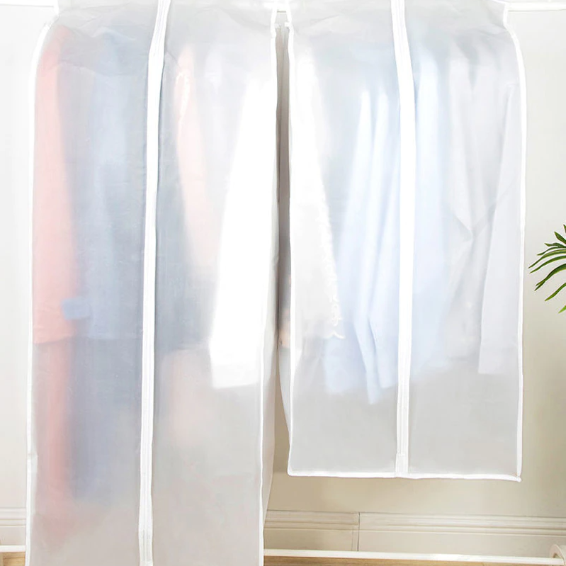 Semi-transparent washable clothing cover that is moisture-proof, dust-proof, and odourless. It keeps your clothing fresh and clean for a long time and may be reused. Simply wash away the dust with clean water after a period of usage. Garment clothes cover protection bags aid in the preservation of clean, wrinkle-free garments. Washable hang clothes dust cover garment bags guard against dust and filth.