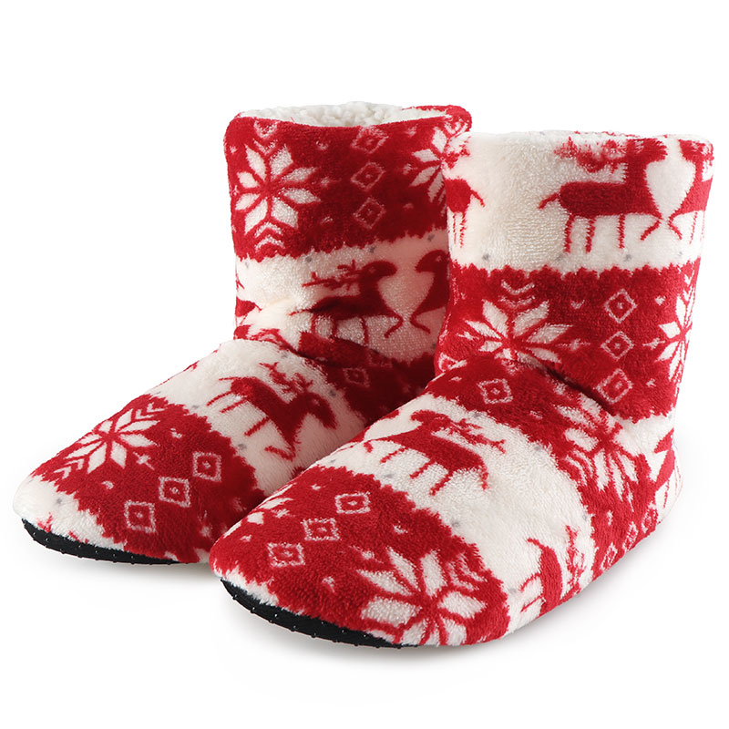 These fuzzy crew-length socks are calf-length. With festive designs, the Christmas prints get you in the holiday spirit. Choose from a variety of adorable designs such as fair isle to Santa, Xmas trees, ornaments, reindeer, and fur ball floor socks coral fleece floor socks Christmas fawn boots indoor boots. These socks are an ideal present for a loved one, friend, or family member.