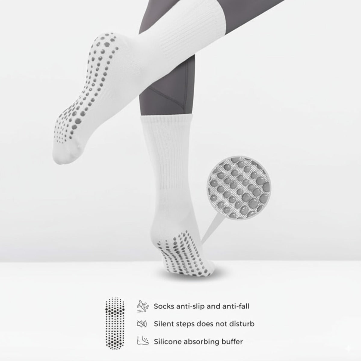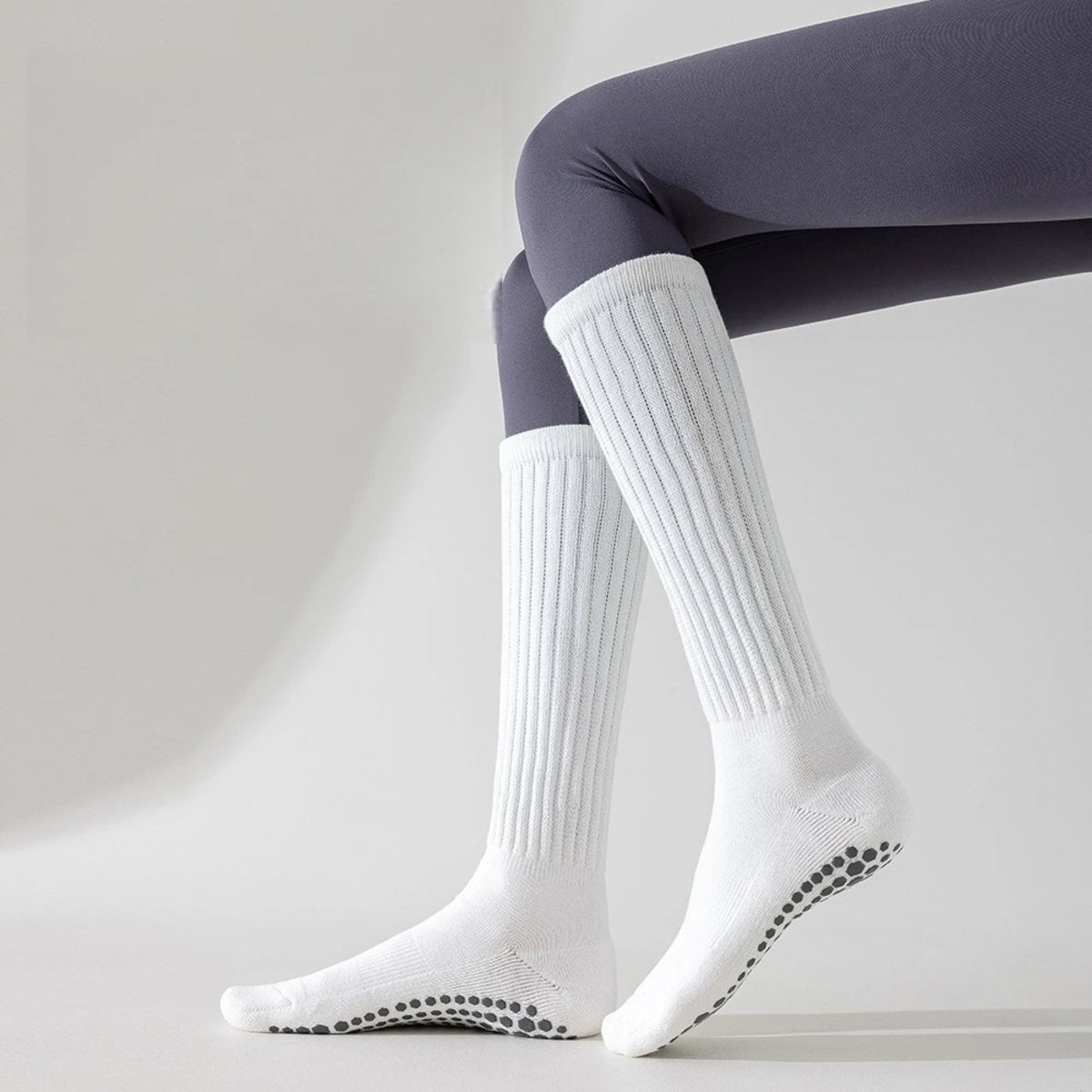 The bottom of each sock is covered with silicone non-slip grips from toe to heel, giving you maximum control during movement. Whether you’re on hardwood, tile, or studio floors, these grips provide improved balance, stability, and injury prevention. Perfect for yoga, Pilates, barre, dance, or simply walking around at home without worrying about slips.