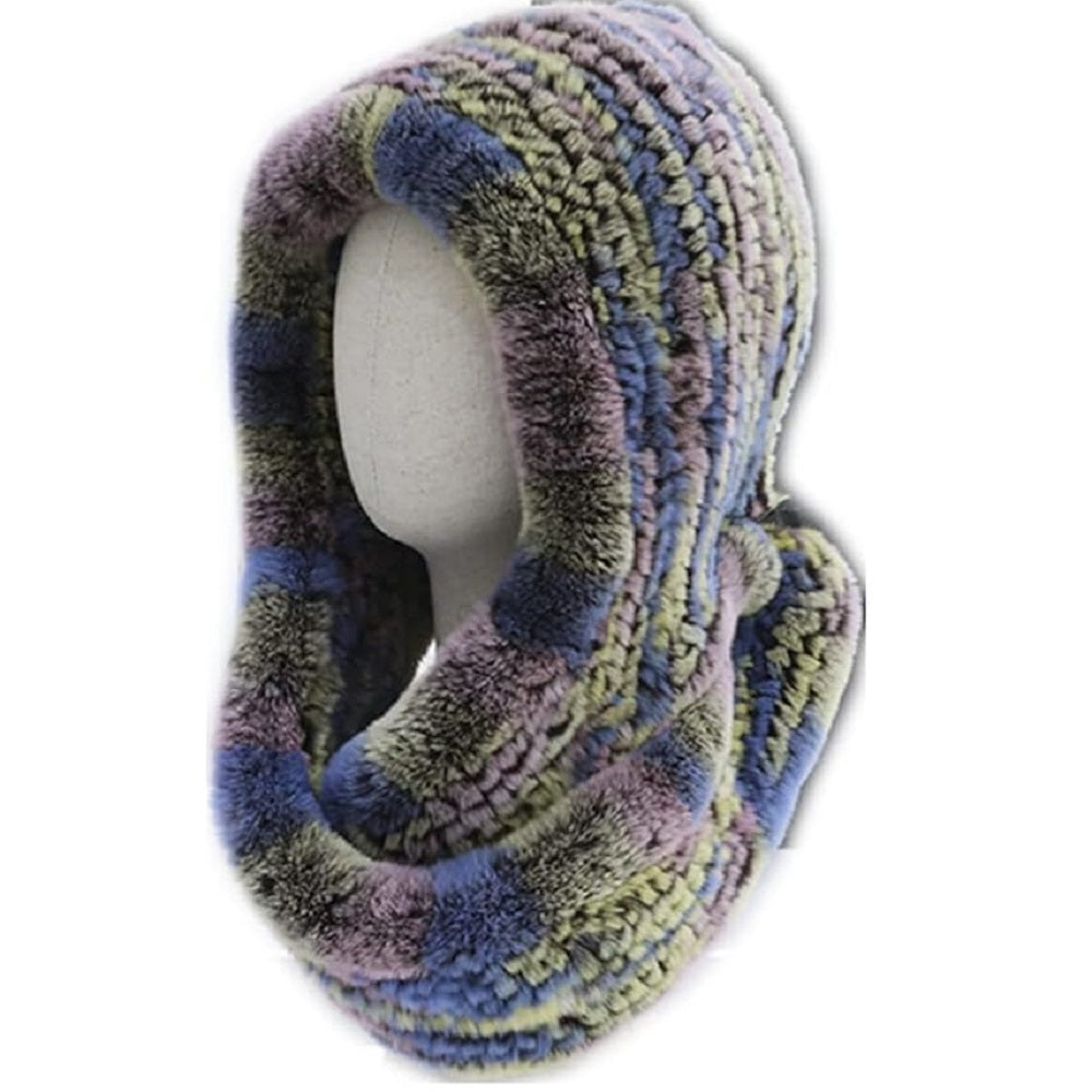 Women's Knitted Rabbit Fur Hat Hooded Scarf Winter Hats