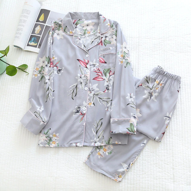 Women's thin long-sleeved viscose cotton pajamas iciCosmetic™