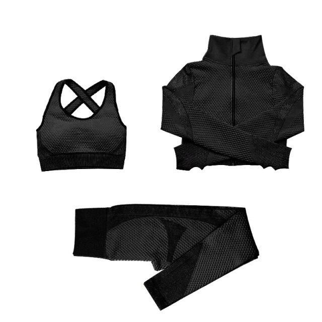 women's tracksuit workout set is professional for sportswear, with 72% polyester, 18% nylon, and 10% spandex, and can fulfil the fundamental demands of workouts. Furthermore, several areas of its performance have been enhanced by the use of a novel honeycomb structure. Fitness Workout Outfit is designed to be as comfortable and wearable as possible. The fabric is soft, breathable, and sweat-wicking.