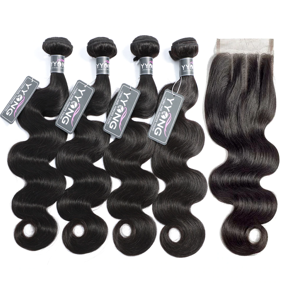 Our Brazilian Hair Weave Bundles With Lace Closure 100% Human Hair, Best Quality Brazilian Virgin Hair, No Chemical Process, Harmless to Health. 100% Unprocessed Grade Brazilian Virgin Body Wave Hair Bundles with Frontal Closure,Can Be Enough To Do a Full Head Or Make a Wig